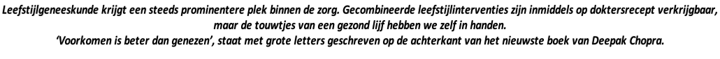 Dankzij de holistische aanpak van Chopra en Tanzi kwam ik erachter dat ik voor mijn eigen gezondheid sommige thema’s meer aandacht moet geven. En mocht ik er niet uitkomen, dan is een vrijwillige leefstijlinterventie niet eens zo’n gek idee.